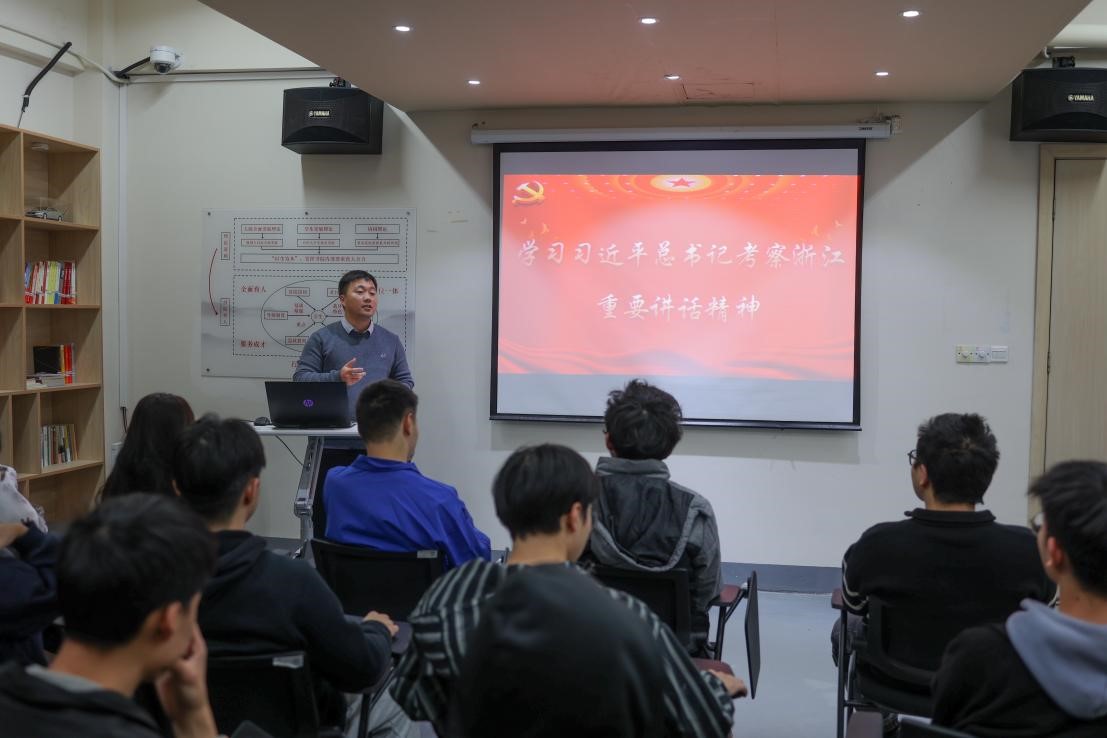 张超强调,青年要原原本本学习习近平总书记考察浙江精神,深刻感悟习总书记考察浙江重要讲话精神的精髓要义、丰富内涵、实践要求,从中汲取力量、锚定目标、坚定信念,努力在学深悟透上走在前、作表率。他指出,青年要勇担青春使命,深学笃行、感恩奋进、勇立潮头,坚定不移沿着习近平总书记指引的道路奋勇前进,启发同学们不仅需要深入学习习总书记的指示精神,更需要将学习成果转化为实际行动,将习近平总书记为浙江绘就的美好蓝图转化为壮丽的青春实践。