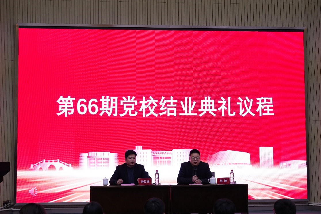 随着庄严的国歌声响起,结业典礼拉开序幕。党校第五分校班主任蒋瑶琪宣读第66期党校结业成员名单。培训期间,培训班涌现出一批学习目标明确、积极进取、综合考核成绩优异的学员。党校第五分校董事长柳艾岭和班主任蒋瑶琪颁布第66期党校优秀学员证书,并予以祝贺。