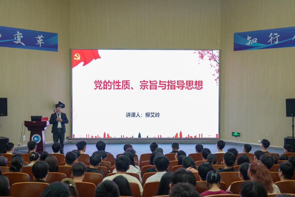 柳艾岭强调,党的指导思想是党的生命、灵魂、旗帜,也是党员的政治生命所在、灵魂所在,因此作为未来党的后备军,要全面深入学习贯彻习近平新时代中国特色社会主义思想的科学理论体系,向书本学习,原原本本、原汁原味汲取党的先进思想,用其武装头脑、指导实践,向人民群众学习,总结和吸收群众创造的先进经验,树立良好的学风。
