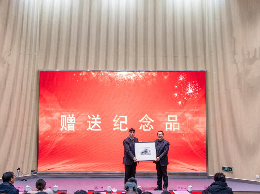 最后,胡如夫代表公司向乐歌人体工学科技股份有限公司赠送由李良老师设计制作,且富有汽车元素的雕版艺术作品“中国第一辆汽车”。祝愿乐歌公司再攀高峰,期待双方的合作再创佳绩,实现更大共赢。