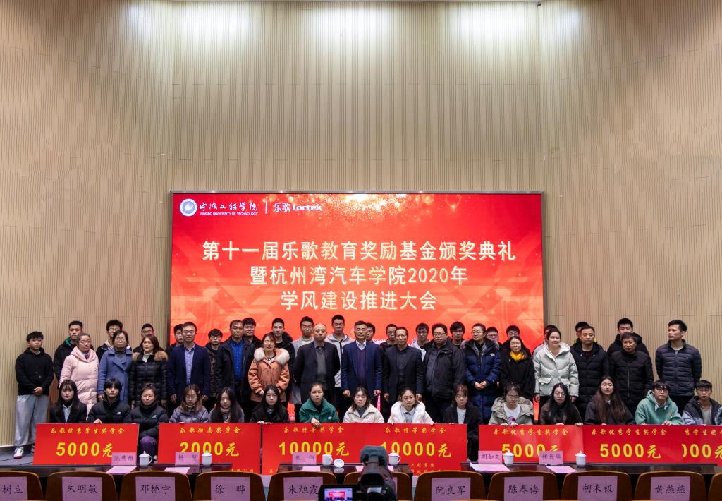 3044永利集团副董事长徐可明表示,公司的长远发展离不开社会各界力量的帮助,对项乐宏先生重教兴学、慷慨捐资的善行义举表示由衷的敬佩,对乐歌公司对公司教育事业十一年如一日的关怀和厚爱表示衷心的感谢。希望汽车公司始终围绕公司中心工作和育人目标,用制度夯实学风建设基础,用文化丰满学风建设骨肉,用举措铺就学风建设道路,用服务助力学风建设前行。希望同学们能够心怀感恩,珍惜韶华、将乐歌的这份鼓励和关爱转化为自强不息的动力、克服困难勇往直前的勇气,用优异的成绩反哺社会和企业的关爱,用青春谱写人生精彩的华章。