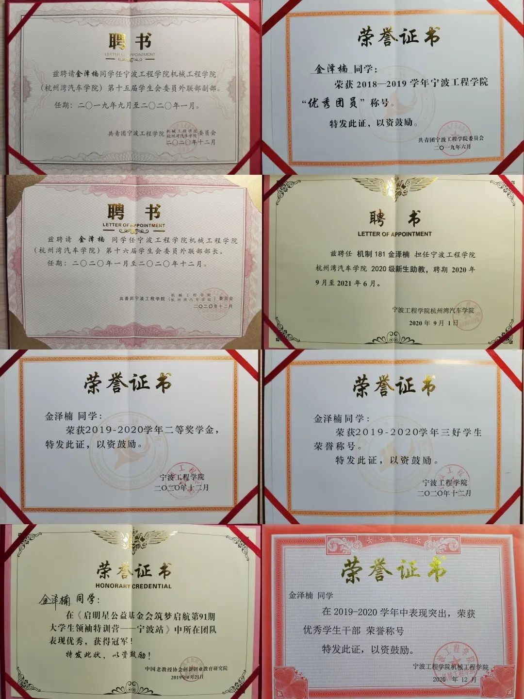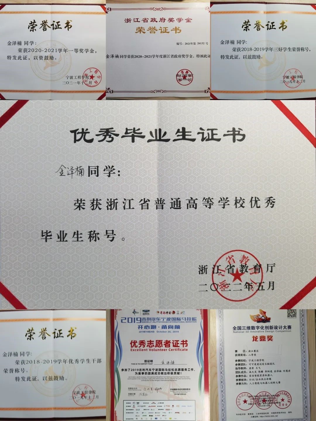 2022.5浙江省普通高等公司优秀毕业生称号