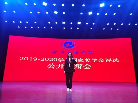 她斩获国家奖学金、省政府奖学金、校一等奖学金、乐歌特等奖学金等多项奖学金及荣誉
