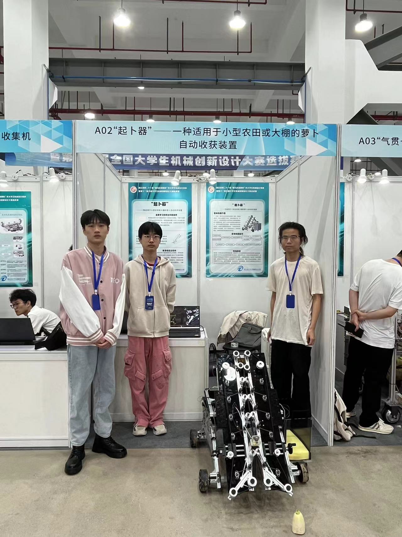 经过现场比赛与实物评审,公司两支参赛队伍斩获浙江省一等奖并获得国赛入围资格。他们分别是兴农机械组的“‘起卜器’——一种适用于小型农田或大棚的萝卜自动收获装置”参赛队和仿生青蛙组的“青蛙大师”参赛队。