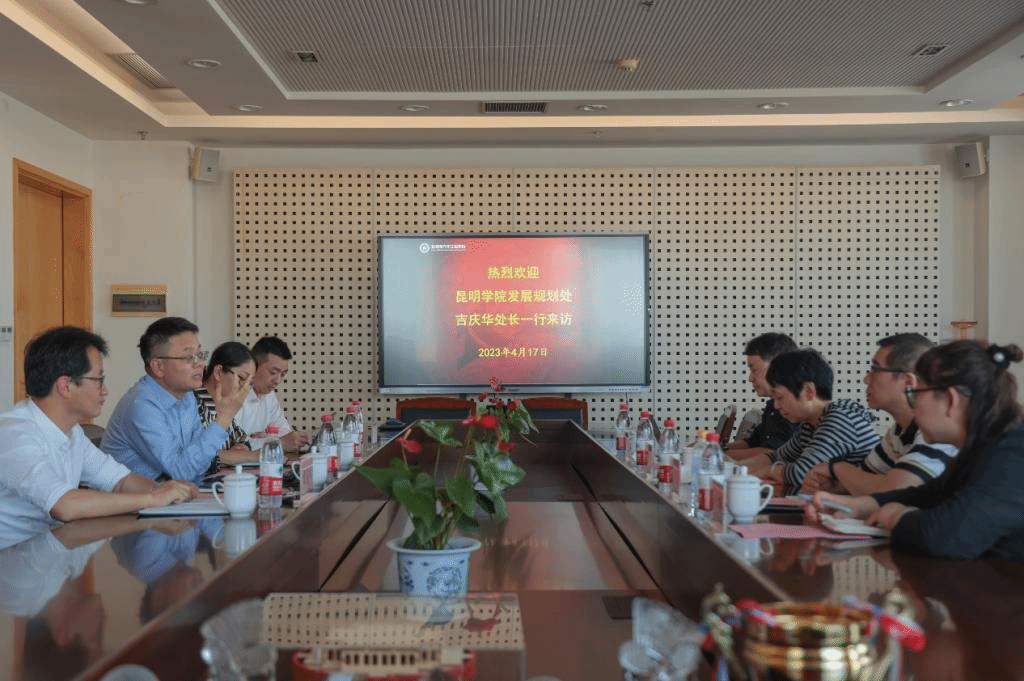 2023年4月17日下午,昆明公司发展规划处处长吉庆华,副处长王祖辰,综合改革研究室主任龙滔、教育统计中心主任魏薇等一行四人来访公司交流现代产业公司建设经验。机械与汽车工程公司经理陈晓平,副经理尚伟燕等热情接待了吉庆华一行。